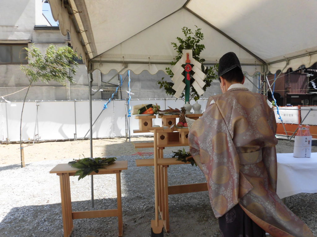 都島北通の新築マンション工事が始まり、地鎮祭をとり行いました。